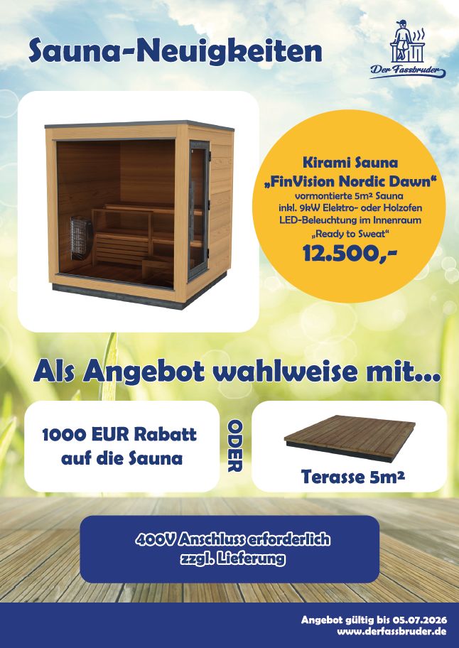 AUSGEZEICHNET Basierend auf 83 Bewertungen Gepostet auf Bastian BeckerTrustindex überprüft, ob die Originalquelle der Bewertung Google ist. Persönlich, fair, super Service. Besser kann man es nicht machen. Bin mega glücklich mit meiner Kirami Finvision. Macht weiter so!Gepostet auf Sabine W.Trustindex überprüft, ob die Originalquelle der Bewertung Google ist. Volle verdiente Sterne, ich hätte nirgendwo anders kaufen wollen. Auch die kleinen Anfangsprobleme wurden immer freundlich, kompetent und ganz zeitnah behandelt und gelöst. Die Beratung am Telefon war spitze, wir hatten uns etwas ganz anderes ausgesucht, was im Nachhinein gar nicht zu uns, zu unserem Platz, Bedarf und unsere Art gepasst hätte. Das Fass so wie die Heizung , die Treppe und die Abdeckung sind sehr hochwertig und sehen auch so aus. Wir baden nun schon eine ganze Weile extrem zufrieden. Auch die Tipps vom Fassbruder zur Reinigung des Wassers, zur Aufheizzeit und so weiter waren hilfreich und zuverlässig. Als Tipp am Rande: Wir gehen geduscht in den Pott. Da wir aber nicht nass vom Haus in den Garten laufen möchten, haben wir uns eine kleine campingdusche gekauft, welche neben dem Pool hängt. Dort hängt man die Pumpe einfach in den Pool, das Wasser ist ja warm, und auf der anderen Seite duschwasser raus. Dazu hängt eine kleine Seife im Säckchen. Funktioniert einfach hervorragend und erspart jede Menge Unannehmlichkeiten. Danke, lieber Fassbruder , der Kauf hat wirklich Spaß gemacht!Gepostet auf Robert KreykenbohmTrustindex überprüft, ob die Originalquelle der Bewertung Google ist. Super gut geklappt. Sehr zu empfehlenGepostet auf Jörn SanderTrustindex überprüft, ob die Originalquelle der Bewertung Google ist. Auf der Messe in Saarbrücken gesehen und am Sonntag Abend online bestellt. Prompt Antwort bekommen. Einsatz rund um die Uhr und überaus freundlich. Das Fass passt perfekt zu uns in den Garten. Sehr zu empfehlen. DankeGepostet auf Anke Link-TouschongTrustindex überprüft, ob die Originalquelle der Bewertung Google ist. Lieber Fassbruder, ein riesengroßes Kompliment an dich und dein Team. Kennengelernt haben wir uns auf den Linslerhof -Tagen, wo ich mich sofort in das Tiny Dippy Tauchbecken verliebt habe. Wir haben es am nächsten Tag gekauft und es wurde postwendend von euch geliefert. Überzeugt hat uns die Qualität eurer Produkte und deine natürliche, offene und freundliche Beratung. Falls wir jemals das Geld haben, würden wir uns jederzeit auch eine Aussensauna von euch zulegen. Ganz liebe Grüße Anke, Armin und RobinGepostet auf Sibylle SchuhmannTrustindex überprüft, ob die Originalquelle der Bewertung Google ist. Sehr netter Kontakt, uneingeschränkt weiterzuempfehlenGepostet auf Jessica ReuschelTrustindex überprüft, ob die Originalquelle der Bewertung Google ist. Nachdem wir lange nach einem einer geeigneten Bademöglichkeit gesucht hatten, wurden wir schließlich im schönen Kaiserslautern bei Fassbruder Franz fündig. Wir freuen uns sehr, dass wir uns im Juni 2025 unseren Traum vom eigenen Badefass erfüllen konnten. Die gepflegte Ausstellung in Franz' Garten und der freundliche Empfang vor Ort war der Beginn einer tollen Zusammenarbeit. Wir wurden stets kompetent beraten, und bei Fragen stand uns Franz mit seiner sympathischen Art jederzeit zur Verfügung. Auch das Badefass an sich ist natürlich top verarbeitet, daher vergeben wir verdientermaßen 5 Sterne und empfehlen ihn uneingeschränkt weiter.Gepostet auf Peter LohreTrustindex überprüft, ob die Originalquelle der Bewertung Google ist. Sehr geehrte Damen und Herren, wir empfehlen die Firma Der Fassbruder uneingeschränkt jedem. Wir haben ein Badefass mit allem bei der Firma auf der Messe Linsler Hof gekauft und es wurde sogar sonntags abends geliefert. Sogar der Chef hat sich persönlich um die Feingartenarbeiten gekümmert, damit unser Fass gerade steht. Wir ziehen unseren Hut vor dieser Firma und ihrer Dienstleistung. Das Fass können wir auch jedem empfehlen. Es bietet eine super Qualität für erholsame Badeabende. Auch nach dem Kauf gibt es keine Probleme. Man kann jederzeit anrufen oder schreiben und wird sofort weitergeholfen. Immer wieder gerne.Gepostet auf Wilfrid SchumannTrustindex überprüft, ob die Originalquelle der Bewertung Google ist. Danke lieber Franz für die hilfreichen Informationen über Badefässer, den tollen Support und das zeitnahe Liefern unseres Fasses. Seither sitzen wir eigentlich fast nur noch im heißen Wasser, die Suchtgefahr hattest du nicht erwähnt. Ansonsten gibt es ausschließlich Positives zu berichten, wir würden unser Fass jederzeit nochmal anschaffen und haben auch dank Franz' Beratung das richtige Fass mit dem optimalen Aufstellort für uns gefunden. Alles in allem sehr empfehlenswert ....Gepostet auf Ralf KemmerTrustindex überprüft, ob die Originalquelle der Bewertung Google ist. Wir haben im Dezember ein schönes Kirami Fass bei Franz abgeholt und sind sehr zufrieden! Fass super, Franz auch super, kompetent, freundlich und super sympathisch. Franz, 5 Sterne - weil es mehr nicht gibt